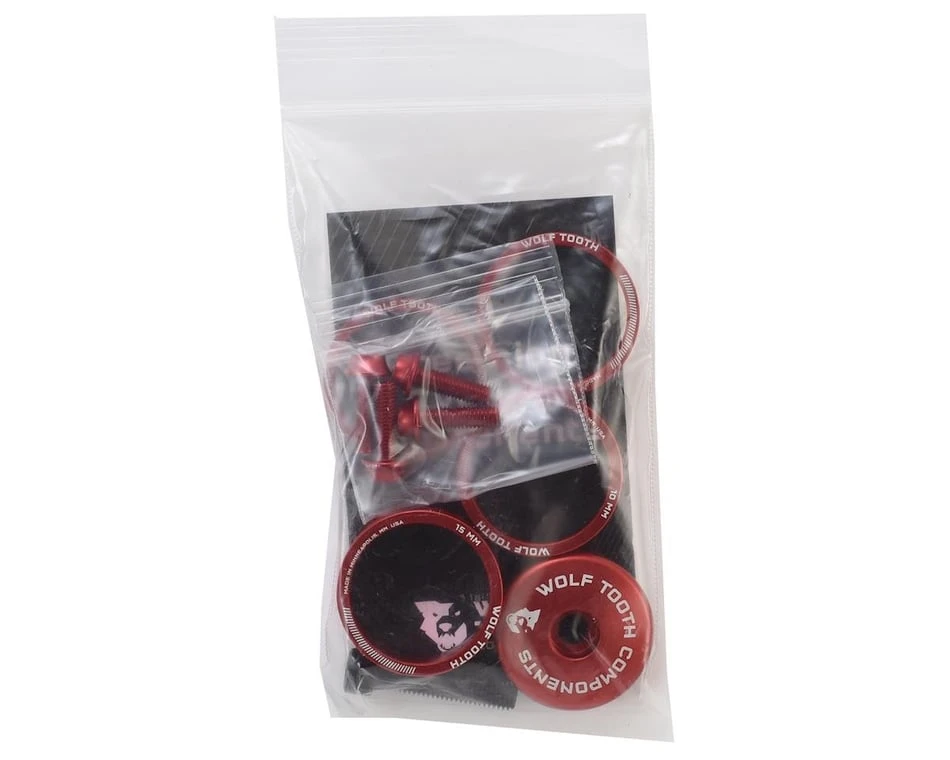 Add style to your bike with the Wolf Tooth Anodized Bling Kit. Including headset spacers of varied sizes, a matching stem cap, and four aluminum water bottle cage bolts, these precision machined aluminum parts will bring a lot of style to your ride.