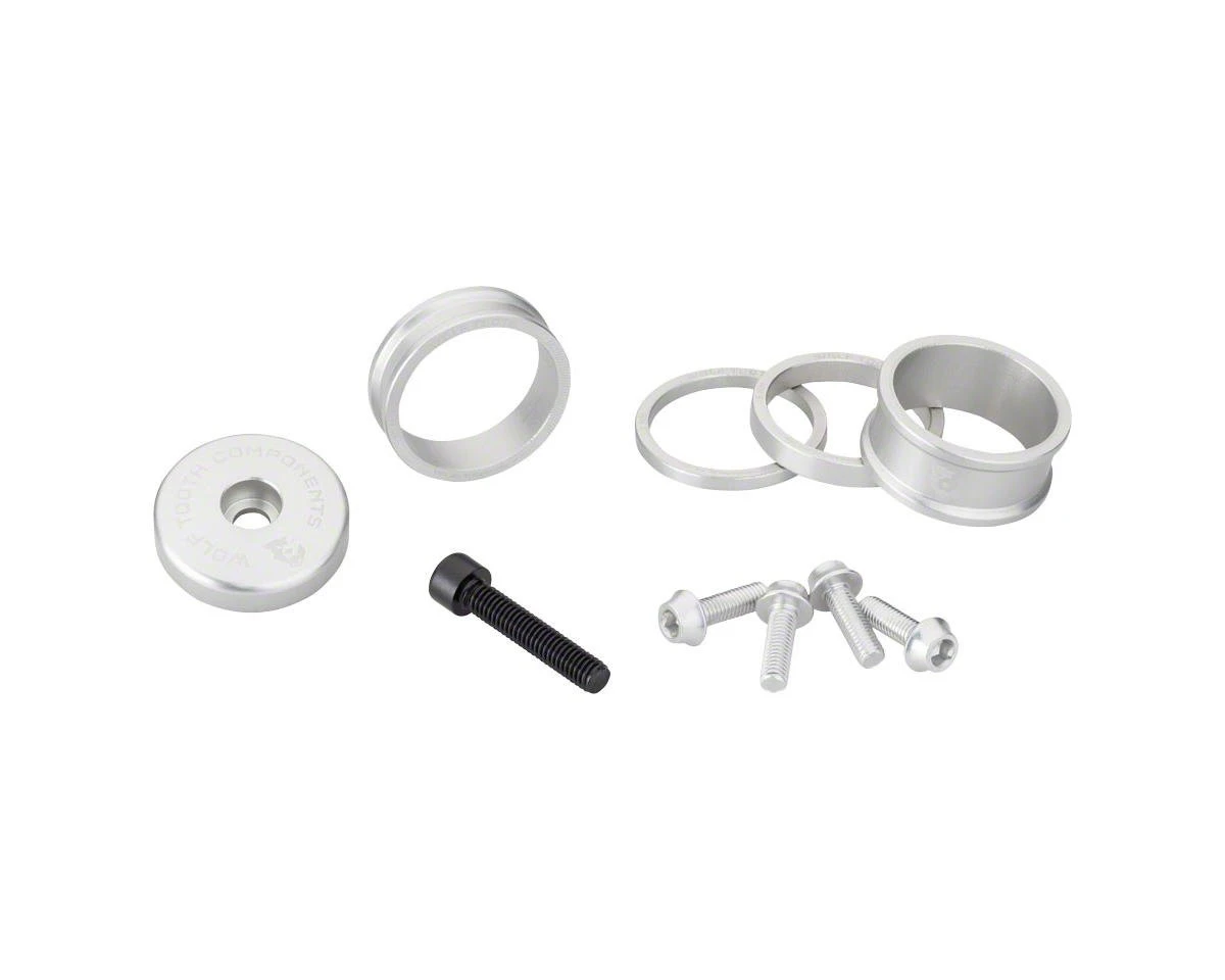 Add style to your bike with the Wolf Tooth Anodized Bling Kit. Including headset spacers of varied sizes, a matching stem cap, and four aluminum water bottle cage bolts, these precision machined aluminum parts will bring a lot of style to your ride.