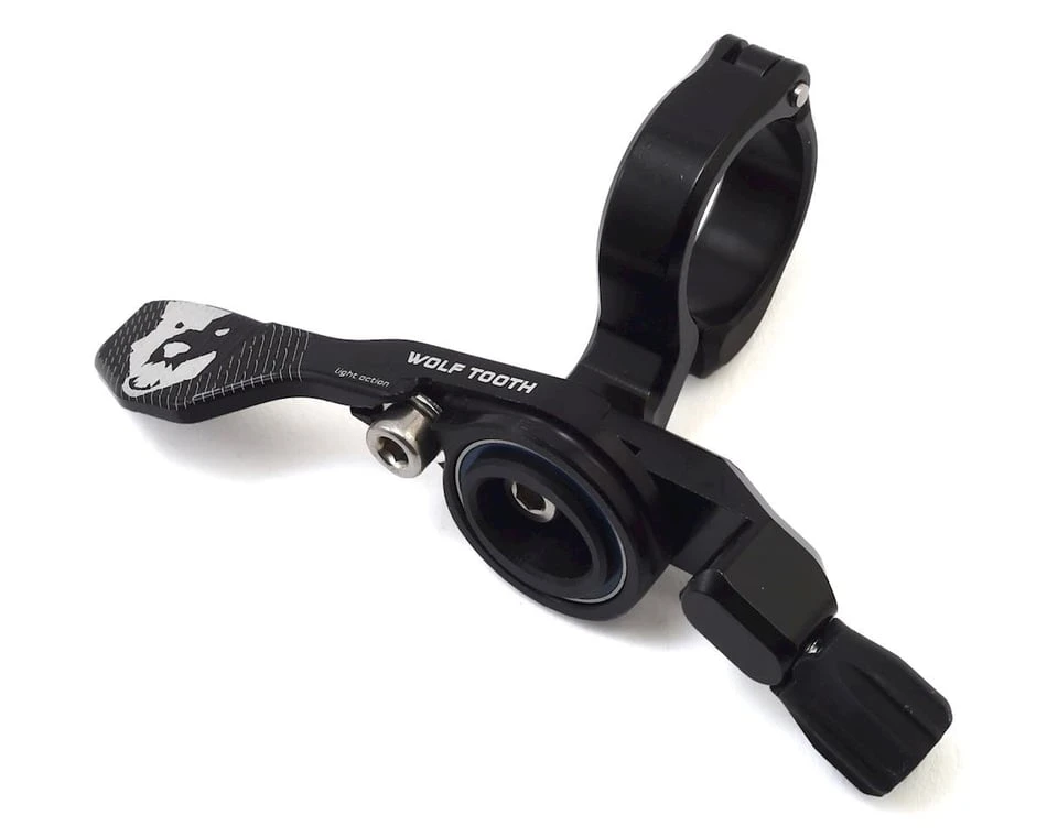 The Wolf Tooth ReMote LA (Light Action) dropper post lever is a welcomed upgrade for cable actuated seatposts. Solving all common dropper remote complaints, this familiar ‘shifter’ style lever is compatible with all cable actuated dropper posts. This LA Remote is a longer lever arm version of Wolf Tooth’s already popular ReMote lever, and is optimal for dropper posts with a harder pull, or for riders that just prefer a really light actuation feel. It reduces the force to actuate a dropper by nearly a third vs the standard ReMote. From its hassle-free installation to smooth ball bearing action to engineered failure point, the lightweight ReMote makes getting low easier.Â