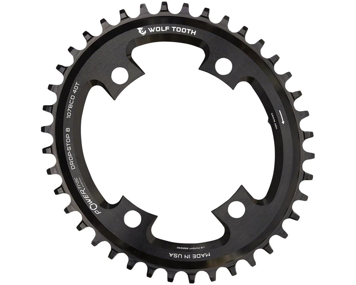 The Wolf Tooth 107 BCD Chainring for SRAM Cranks is compatible with most new SRAM 1x road cranks that use the 107 BCD spider, including the SRAM AXS Power Meter Spider. This chainring uses the patented Wolf Tooth Drop-Stop B Wide/Narrow tooth profile that is optimized for drop bar bikes.