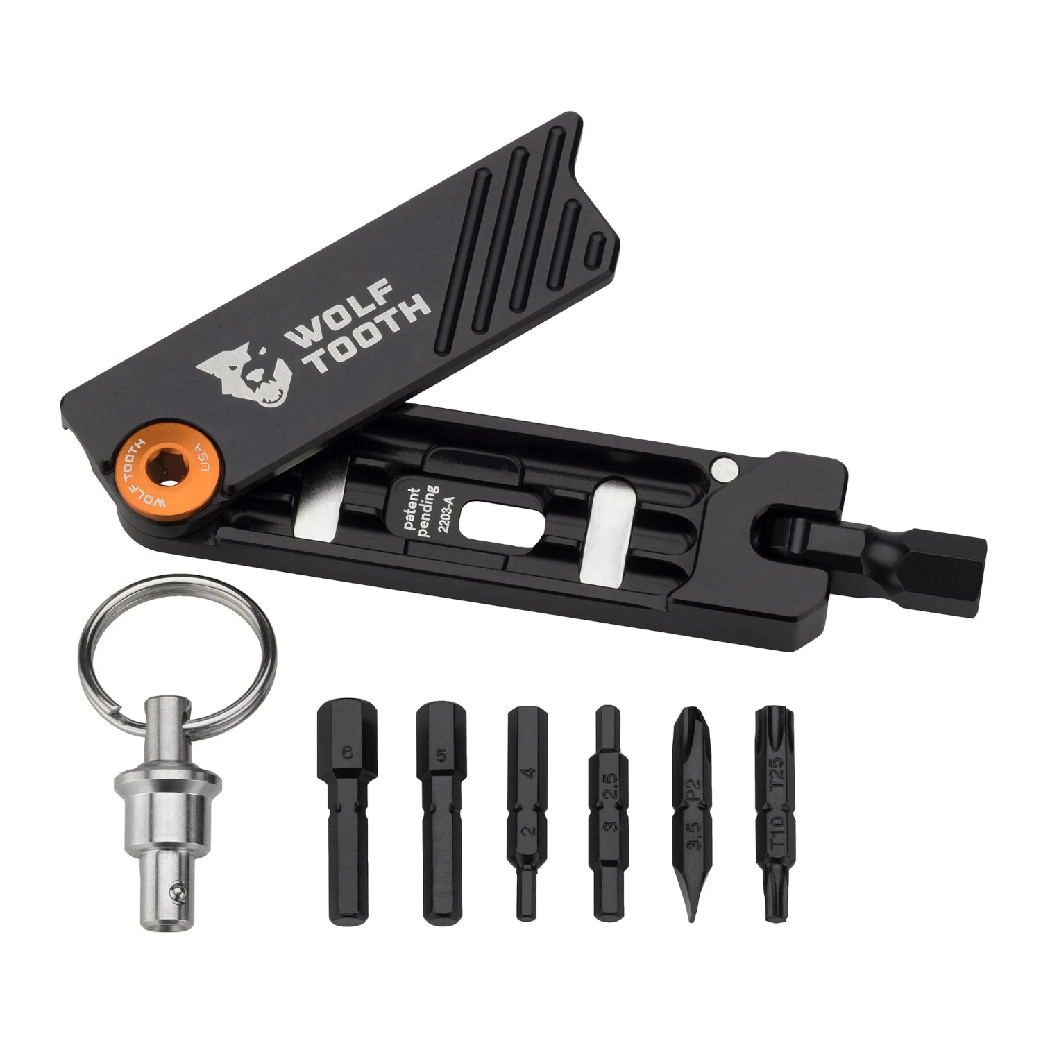 Features of the Wolf Tooth 6-Bit Hex Wrench Keyring Multitool