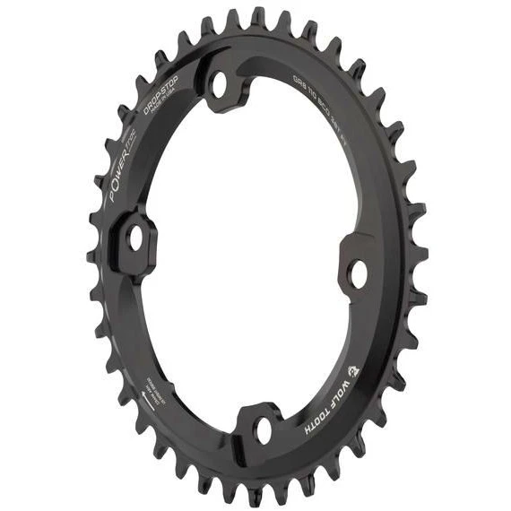 - Wolf Tooth’s patented Drop-Stop® wide/narrow tooth profile provides the ultimate chain retention and mud shedding ability.