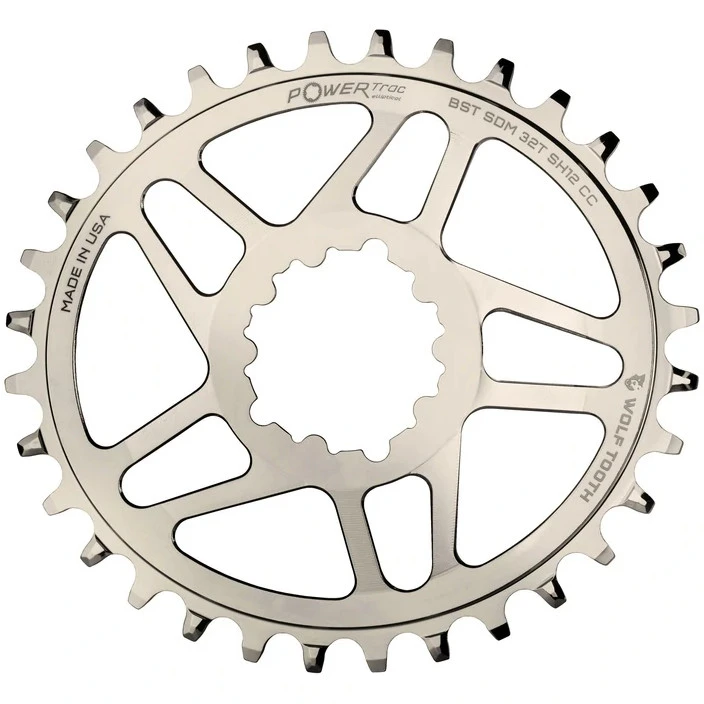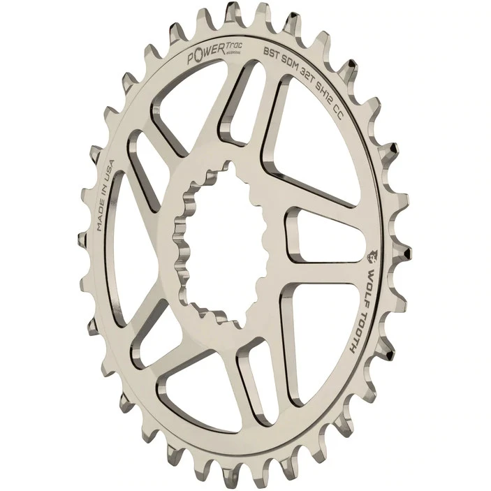 The Wolf Tooth Elliptical Direct Mount Boost chainring with a nickel coating was specially designed to look good on the Cane Creek eeWings titanium crankset. But it also works great on all SRAM sets with 3-bolt Direct Mount.