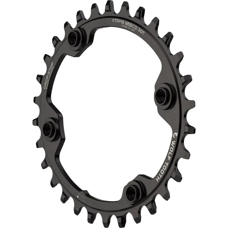 Wolf Tooth’s patent pending Drop-Stop wide/narrow tooth profile for the ultimate chain retention and mud shedding ability. Recommended is the use of a clutch style rear derailleur for the best chain security.