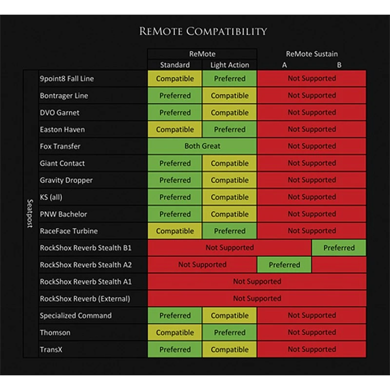 Broad compatibility: The ReMote has been tested and is recommended for use with many cable-actuated dropper posts.
