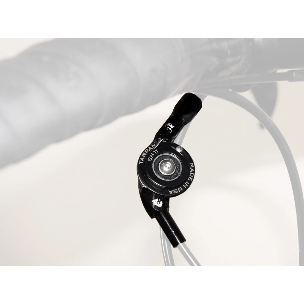 The 18 g Tanpan Inline installs in moments, tucking neatly betwetten the shifting cable housing and an indexed barrel provides for quick and easy cable adjustment. Each Tanpan is CNC machined in the USA by Wolf Tooth and comes fitted with precision stainless steel hardware and a sealed cartridge bearing.